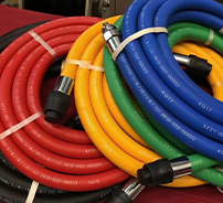 Están disponibles tanto conjuntos de mangueras de longitud completa como conjuntos de mangueras de extensión corta. Por lo general, se instalan conjuntos cortos entre la salida del dispensador y la válvula de separación para optimizar la dirección de la fuerza de extracción, lo que ayuda a que la válvula de separación se cierre de manera confiable en caso de descargas accidentales.